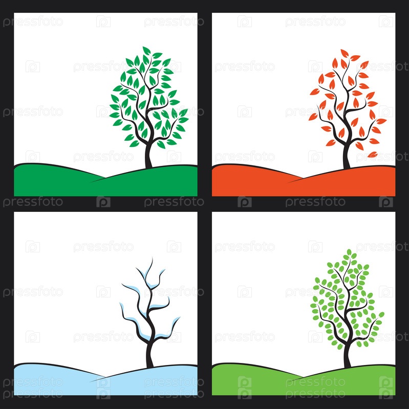 Дерево на холме в четырех видах, иллюстрация