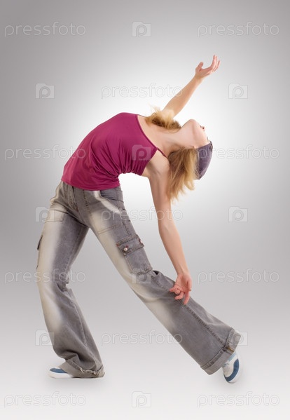 Портрет красивой молодой блондинки, исполняющей современный танец