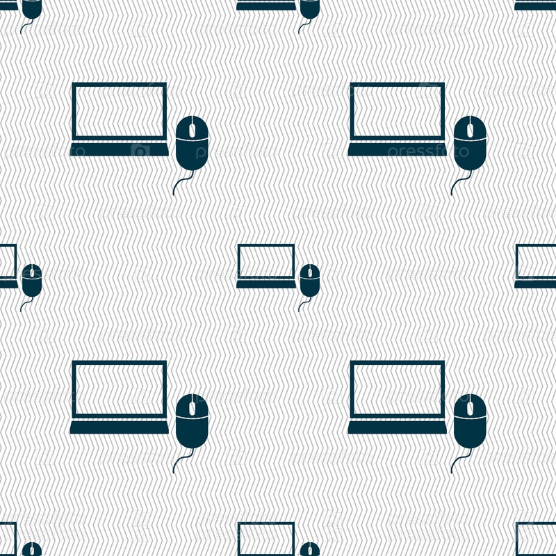 Широкоэкранный монитор компьютера, мышь. Абстрактный фон с геометрическими фигурами. Вектор