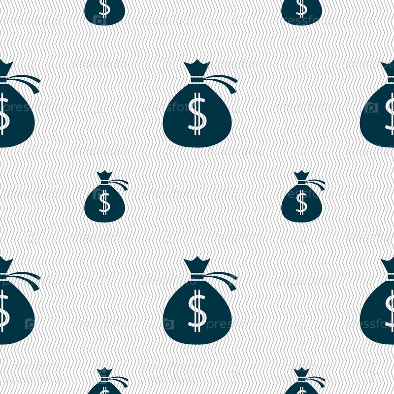 Деньги сумку значок знак. Бесшовный фон с геометрической текстурой. Вектор