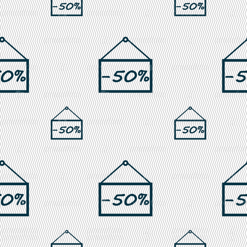 50 скидка значок знак. Бесшовный фон с геометрической текстурой. Вектор
