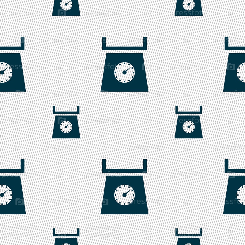 Кухонные весы знак значок. Бесшовный фон с геометрической текстурой. Вектор