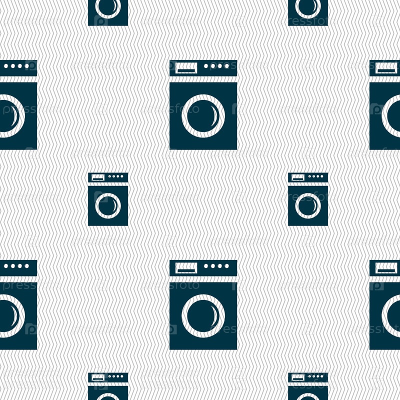 Стиральная машина значок знак. Бесшовный фон с геометрической текстурой. Вектор