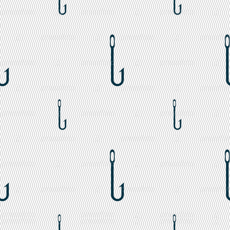 Рыбалка Хук значок знак. Бесшовный фон с геометрической текстурой. Вектор