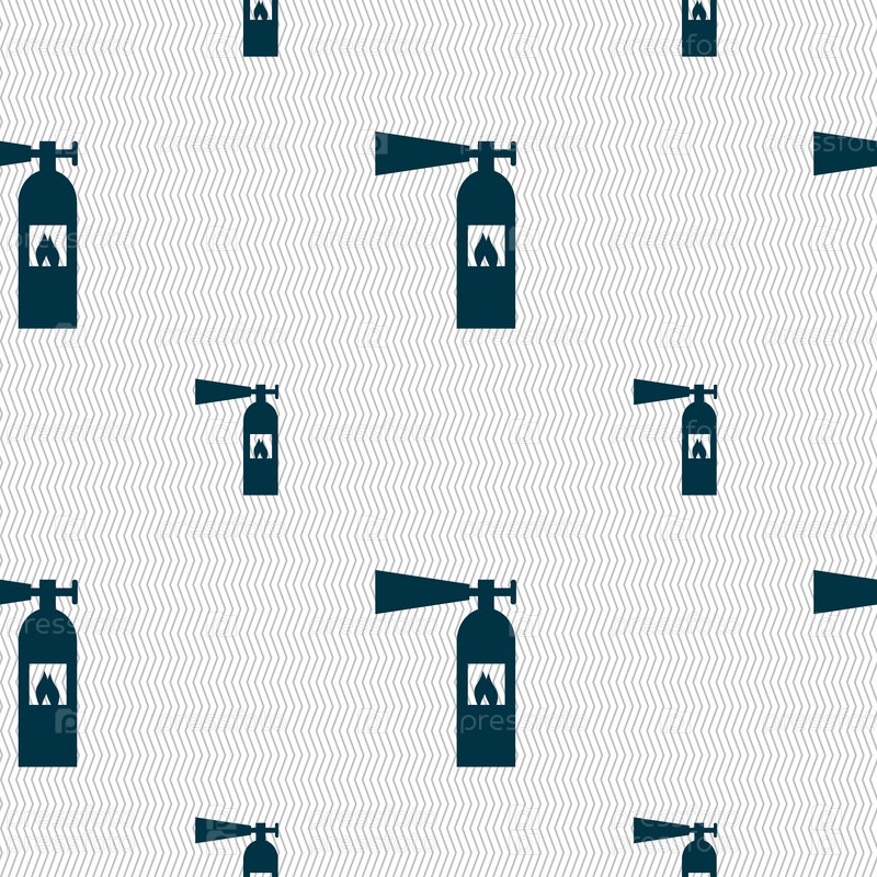 Огнетушитель значок знак. Бесшовный фон с геометрической текстурой. Вектор