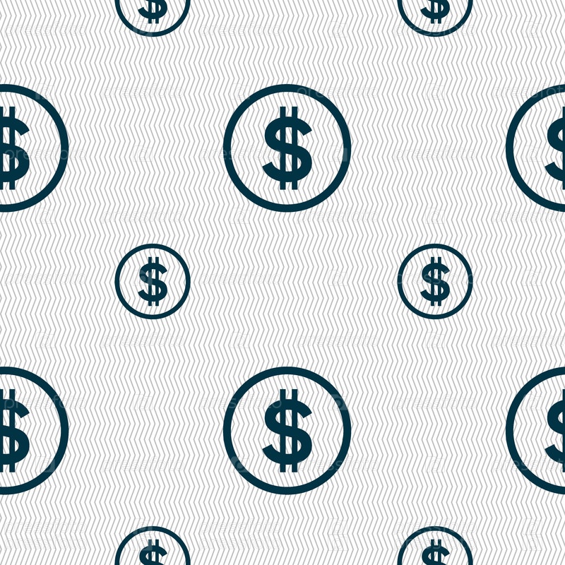 Значок знак доллара. Бесшовный фон с геометрической текстурой. Вектор