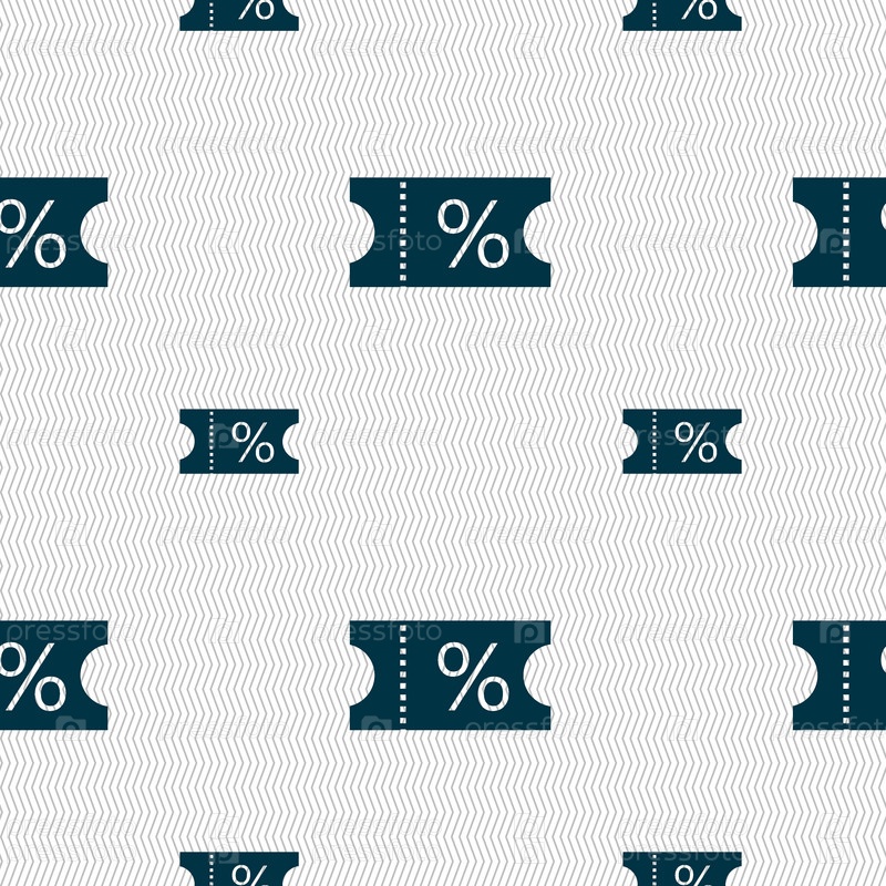 Билет со скидкой значок знак. Бесшовный фон с геометрической текстурой. Вектор