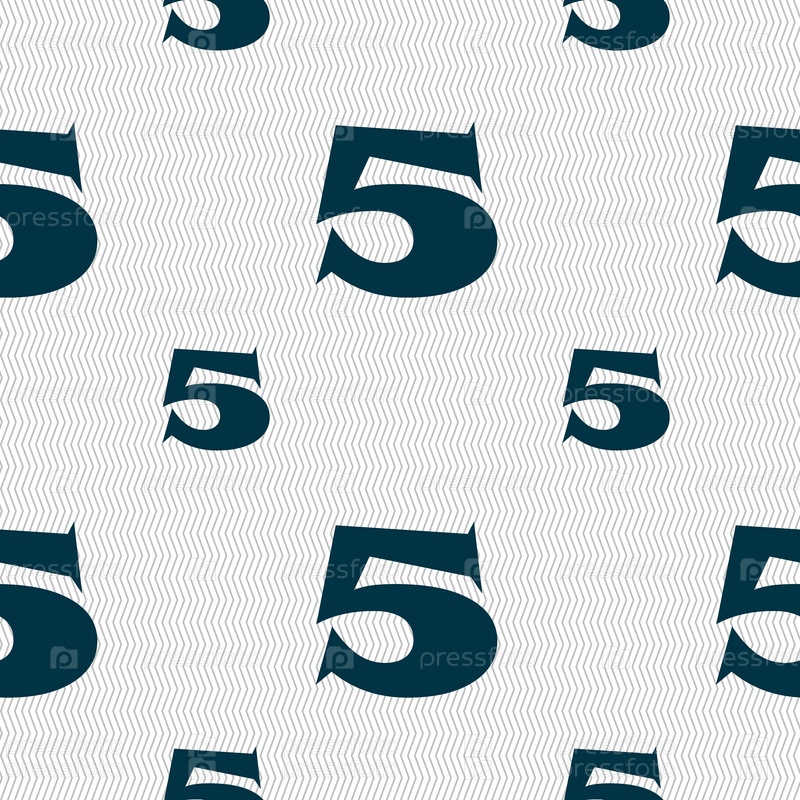 Номер пять значок знак. Бесшовный фон с геометрической текстурой. Вектор