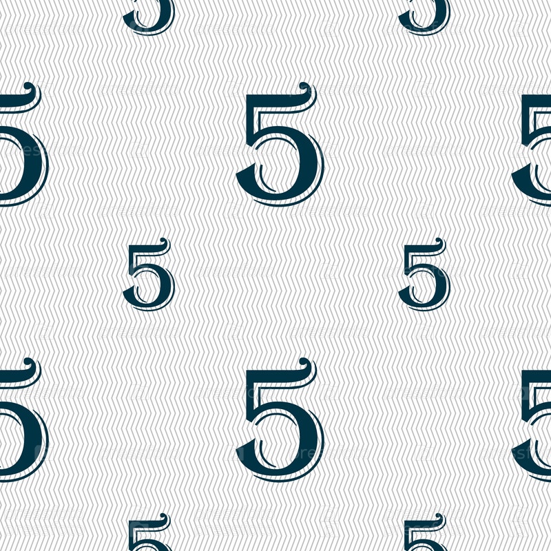 Номер пять значок знак. Бесшовный фон с геометрической текстурой. Вектор