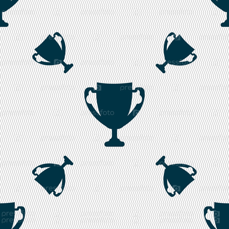 Победитель Кубка знак значок. Награждение победителей символа. Трофей. Бесшовный фон с геометрической текстурой. Вектор