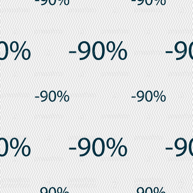 90% скидка знак значок. Продажа символ. Специальное предложение метка. Бесшовный фон с геометрической текстурой. Вектор