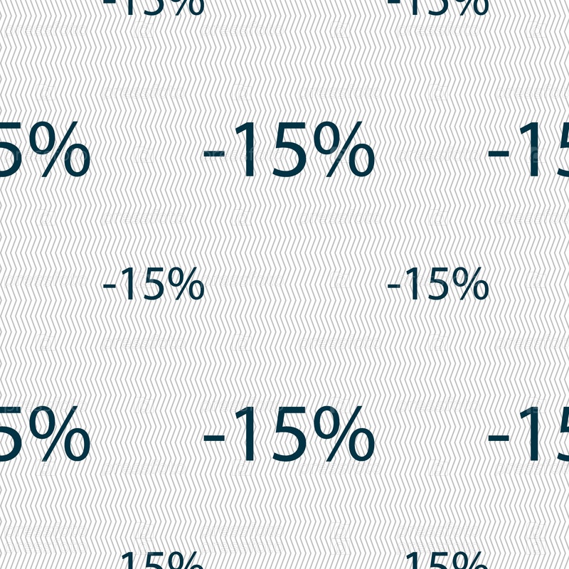 15% скидка знак значок. Продажа символ. Специальное предложение метка. Бесшовный фон с геометрической текстурой. Вектор