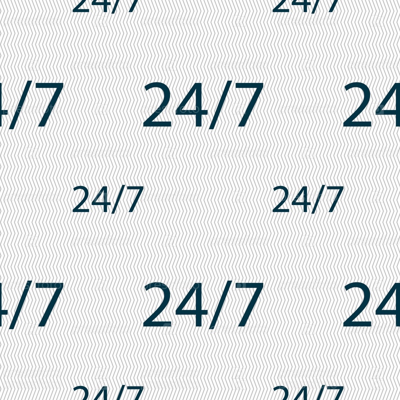 Сервис и поддержка клиентов. 24 часа в сутки и 7 дней в неделю значок. Бесшовный фон с геометрической текстурой. Вектор