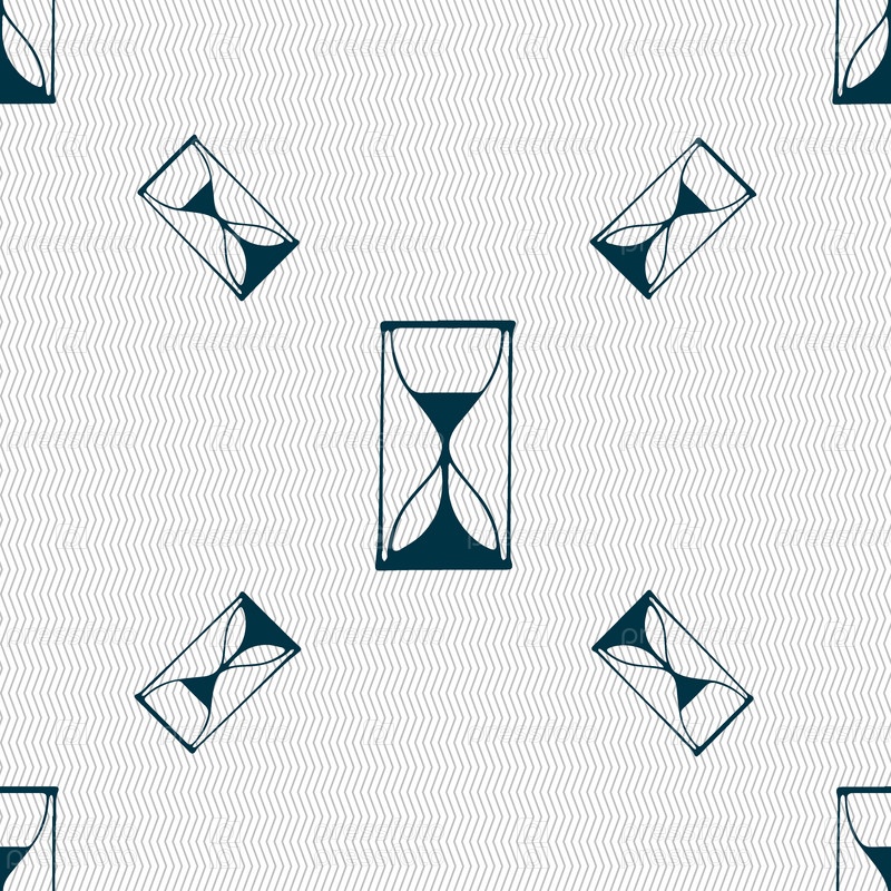 Значок песочных часов знак. Символ песка таймера. Бесшовный фон с геометрической текстурой. Вектор
