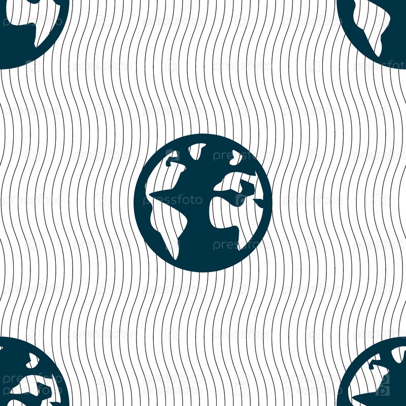 Глобус знак значок. Символ географии карта мира. Глобус на стенде для изучения. Бесшовный фон с геометрической текстурой. Вектор