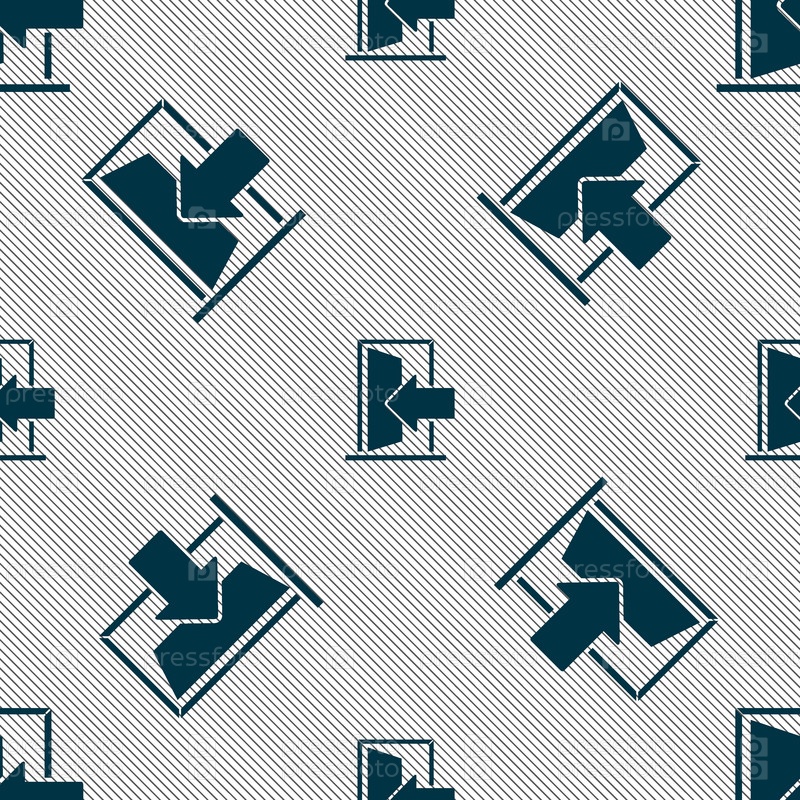 Дверь, ввод или выход значок символа. Бесшовный фон с геометрической текстурой. Вектор