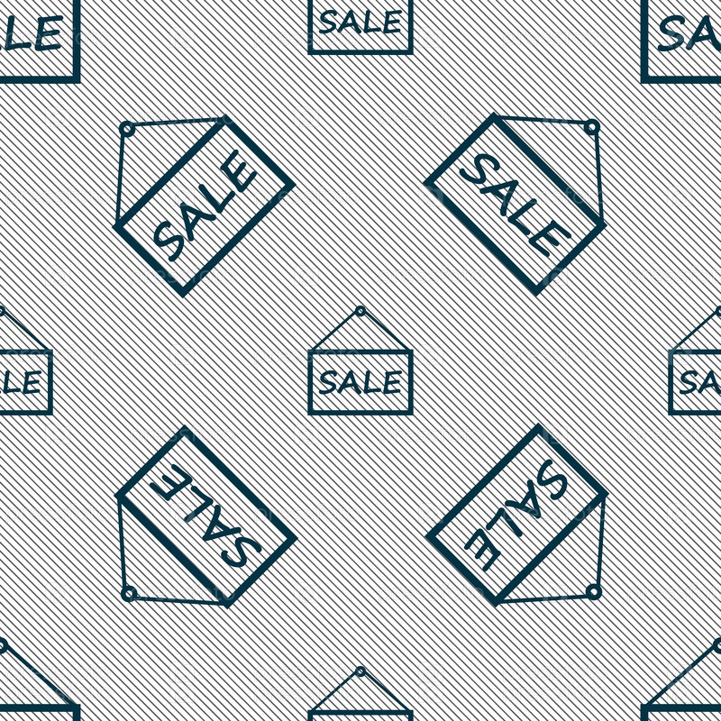 Продажа тег значок знак. Бесшовный фон с геометрической текстурой. Вектор