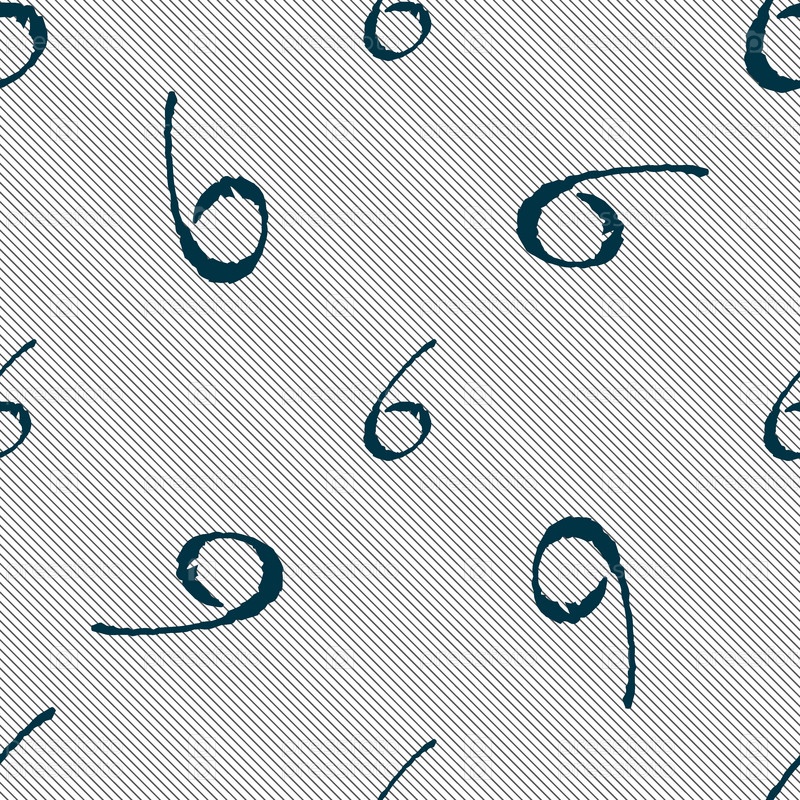 Номер шесть значок знак. Бесшовный фон с геометрической текстурой. Вектор