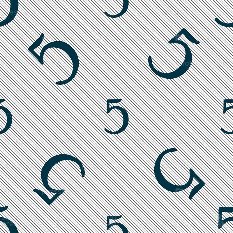 Номер пять значок знак. Бесшовный фон с геометрической текстурой. Вектор
