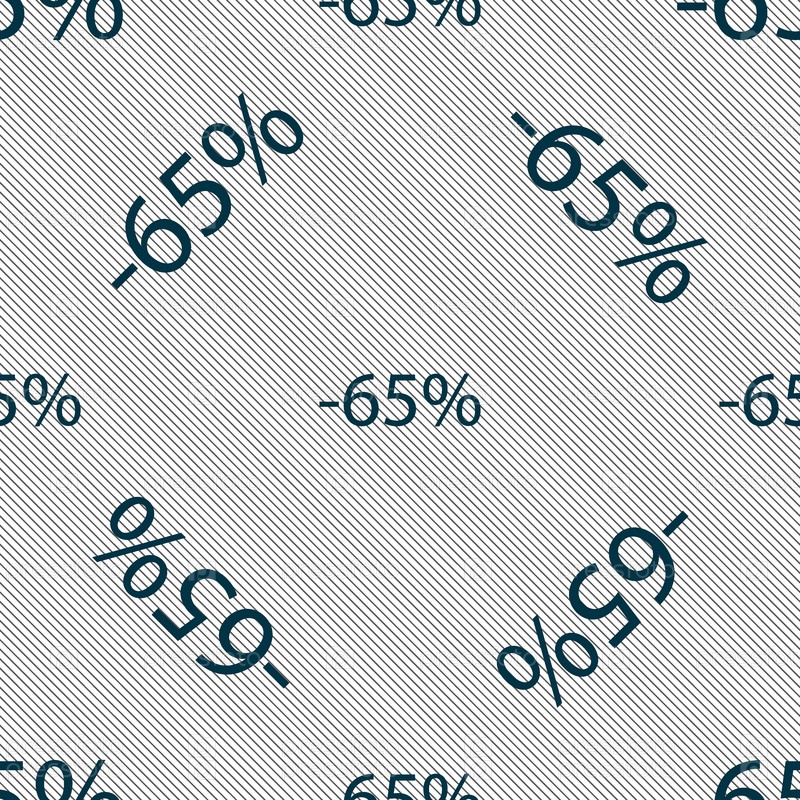 65% скидка знак значок. Продажа символ. Специальное предложение метка. Бесшовный фон с геометрической текстурой. Вектор