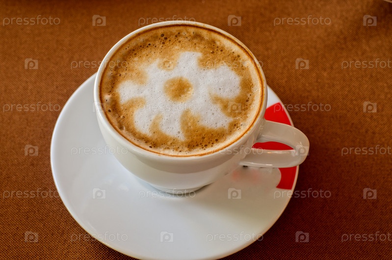 Капучино, чашка кофе крупным планом на столе