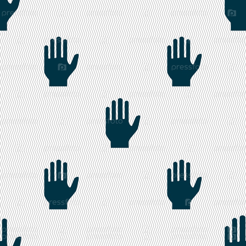 Значок печати знак руки. Остановите символ. Абстрактный фон с геометрическими фигурами. Вектор