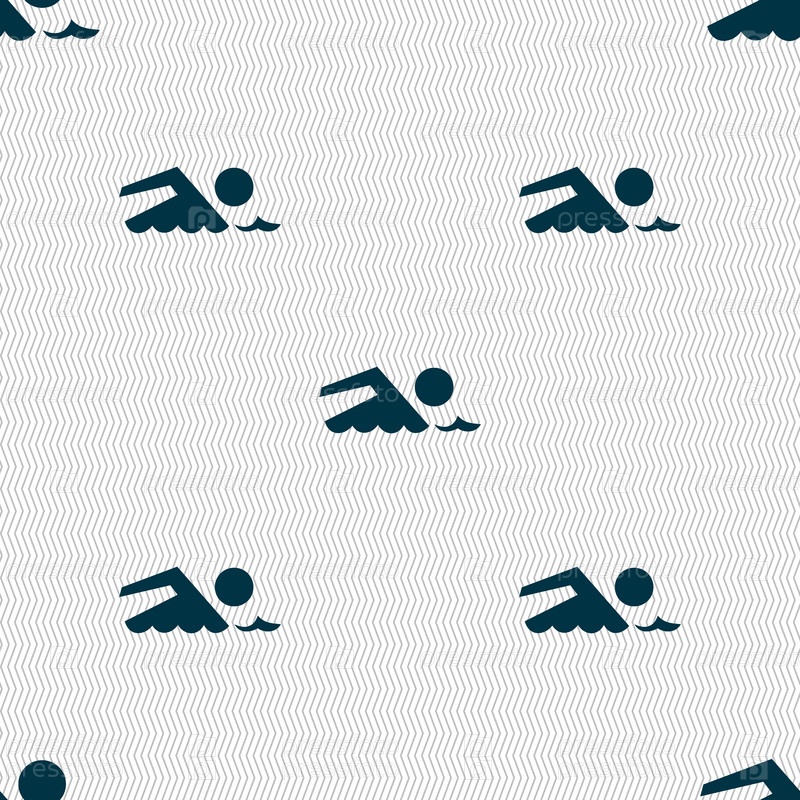 Плавательный знак значок. Символ плавать бассейн. Морская волна. Абстрактный фон с геометрическими фигурами. Вектор