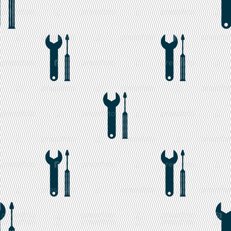 Ремонт инструмента знак значок. Символ службы. Отвертка с помощью гаечного ключа. Абстрактный фон с геометрическими фигурами. Вектор