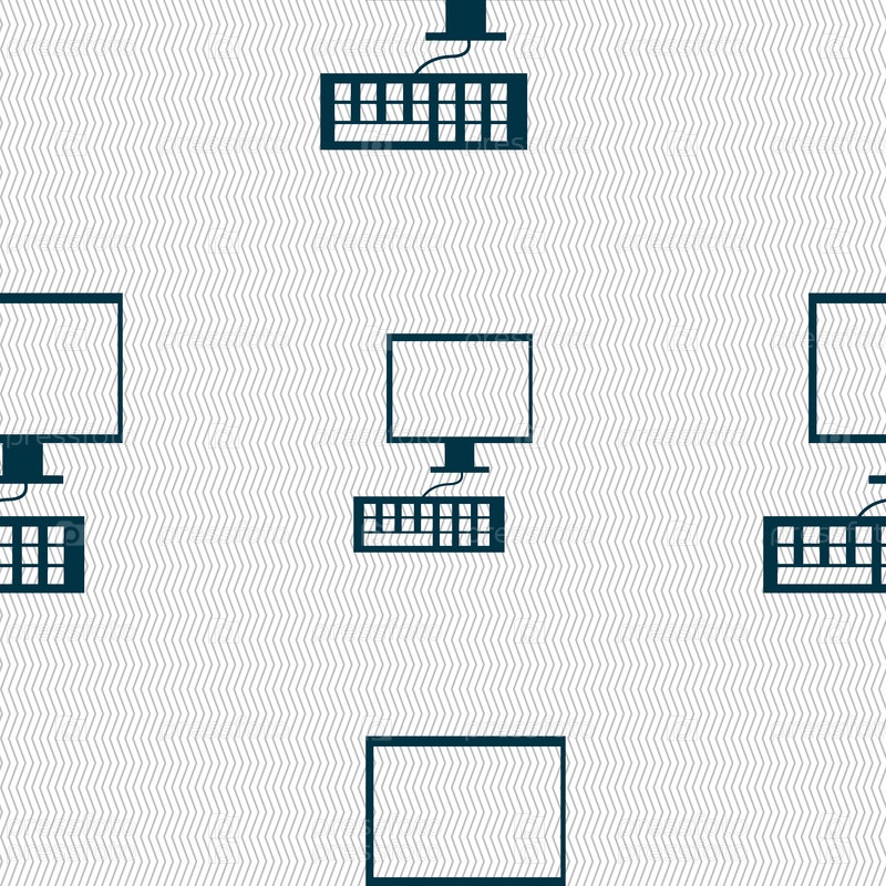 Монитор компьютера и клавиатура. Абстрактный фон с геометрическими фигурами. Вектор