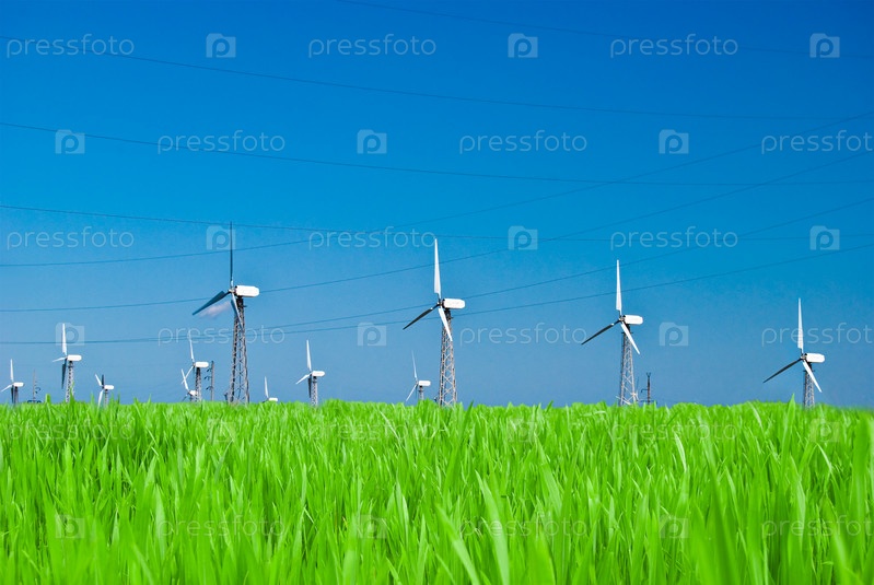 ВЭС - ветровая электростанция на фоне синего неба