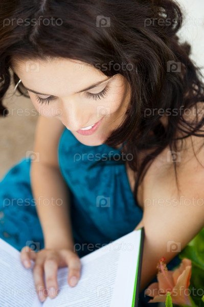 Красивая девушка в парке с книгой