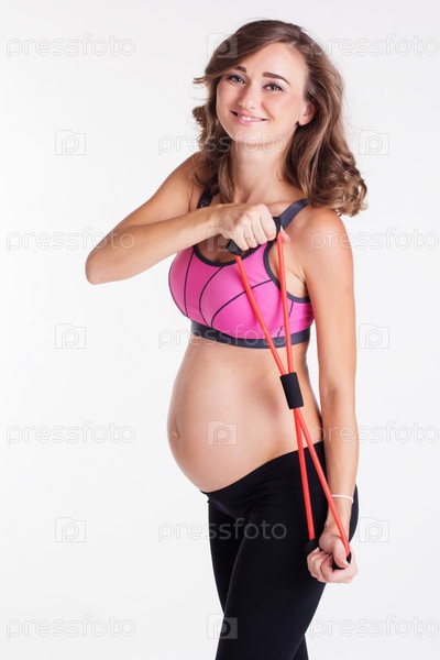 Беременная женщина делает упражнения