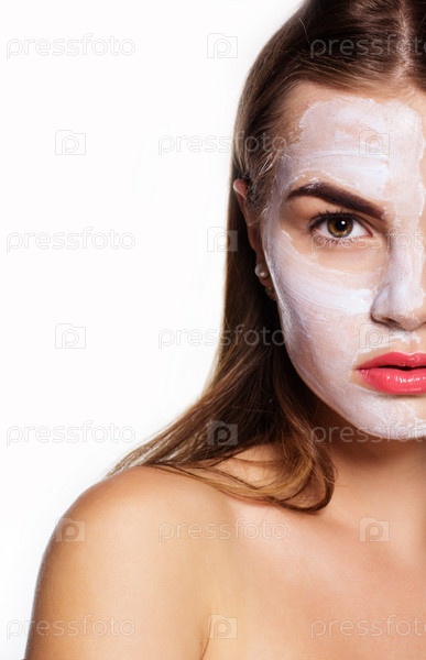 Красивая девушка с крем-маской на лице