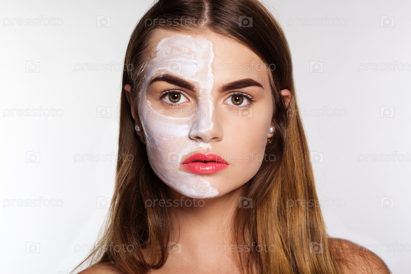 Красивая девушка с крем-маской на лице