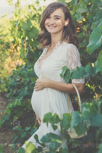 Красивая беременная девушка в винограднике