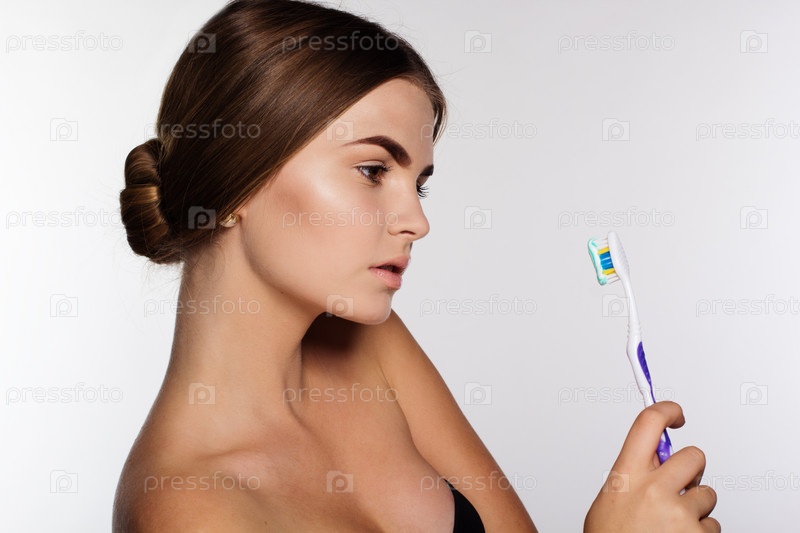 Молодая девушка с зубной щеткой