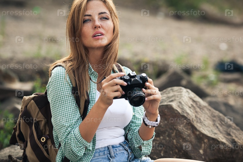 Молодая женщина с фотоаппаратом