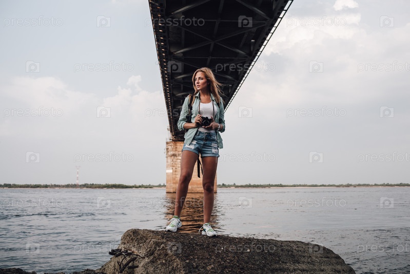 Молодая женщина с фотоаппаратом