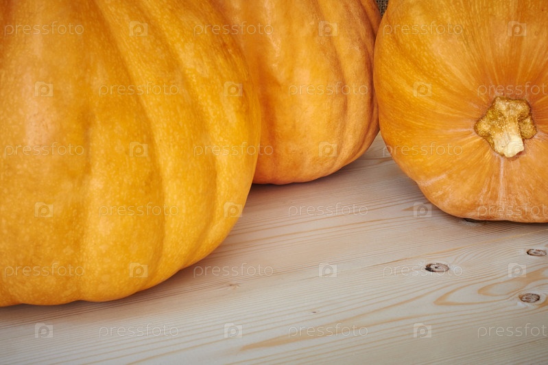 Осенние тыквы на деревянном столе
