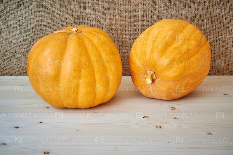 Осенние тыквы на деревянном столе