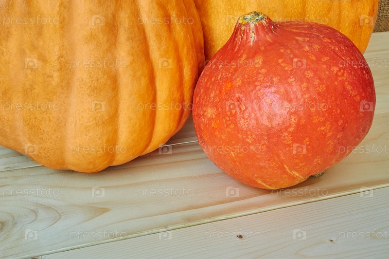 Осенние тыквы на деревянном столе