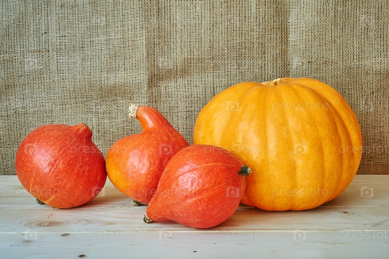 Осенние тыквы на деревянном столе