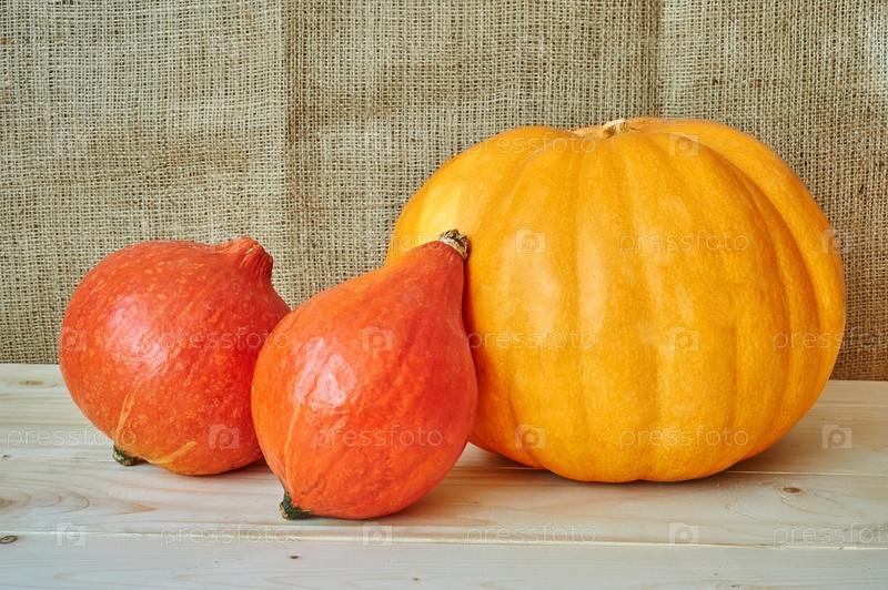 Осенние тыквы на деревянном столе