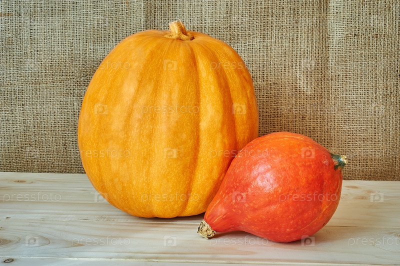 Осенние тыквы на деревянном столе