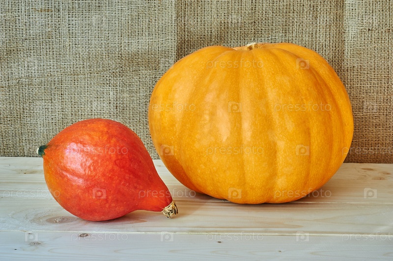 Осенние тыквы на деревянном столе