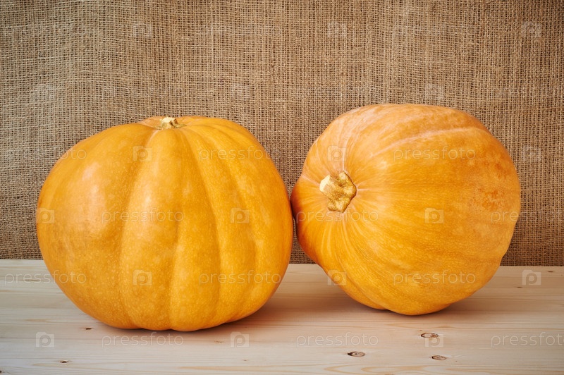 Осенние тыквы на деревянном столе