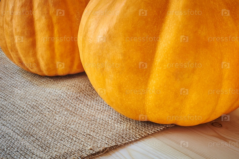 Осенние тыквы на деревянном столе