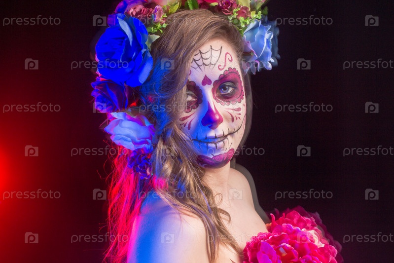 Девушка в костюме и гриме на Хэллоуин