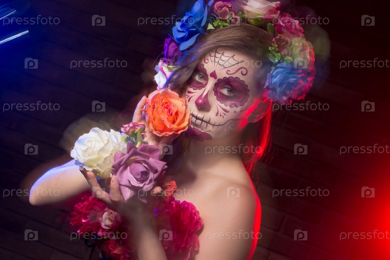 Девушка в костюме и гриме на Хэллоуин