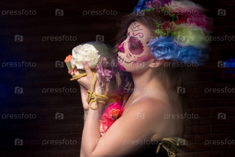 Девушка в костюме и гриме на Хэллоуин